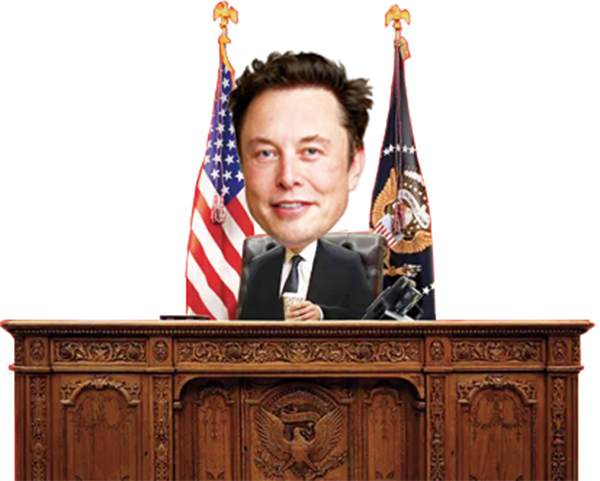 시사 주간 타임이 최근 정부효율부(DOGE) 수장 일론 머스크가 결단의 책상에 앉은 합성 사진을 표지에 게재했다. 표지에서 머스크는 커피를 손에 든 채 성조기와 미 대통령 상징기 사이에 자리 잡고 있다. 머스크의 권력이 도널드 트럼프 대통령에 버금갈 정도로 비대해지고 있음을 풍자한 것이다. 트럼프는 이 표지를 어떻게 생각하느냐는 기자 질문에 “타임지가 아직도 영업 중이냐”고 응수했다. 미국 언론들은 “권력을 공유하는 것을 좋아하지 않는 트럼프의 심기가 불편할 가능성이 있다”(CNN), “트럼프가 즐거워 보이지 않는다”(뉴욕타임스)고 전했다.