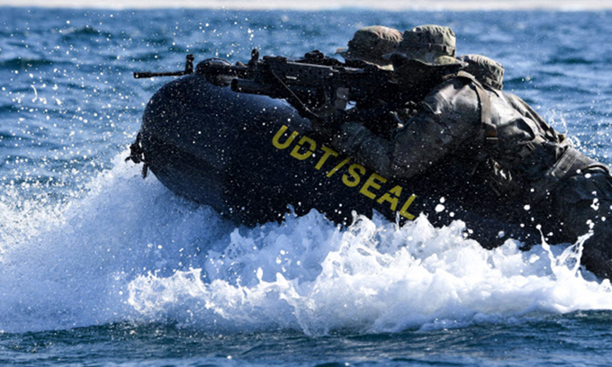 11일 해군 특전요원(UDT/SEAL)들이 강원도 동해안 일대에서 해안침투훈련을 하고 있다. 10일부터 19일까지 진행되는 이번 혹한기 훈련은 해안침투훈련을 비롯한 산악기동훈련 및 특수정찰훈련 등 강도 높은 훈련을 통해 특전요원들의 특수작전 능력과 임무수행 절차를 숙달하고, 어떠한 상황에서도 임무를 완수할 수 있는 특수작전태세를 확립하기 위해 마련됐다. (사진=해군 제공)