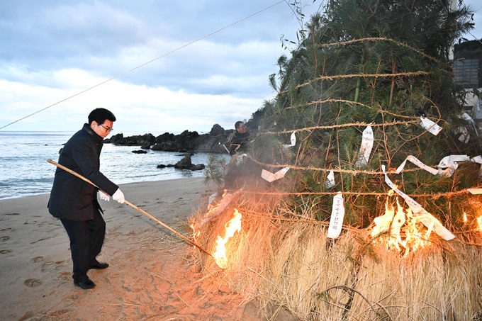 경북 영덕군 남정면 구계리 새마을회는 정월대보름 맞아 12일 오후 구계리 백사장에서 ‘달집태우기’ 행사를 개최했다고 13일 밝혔다.