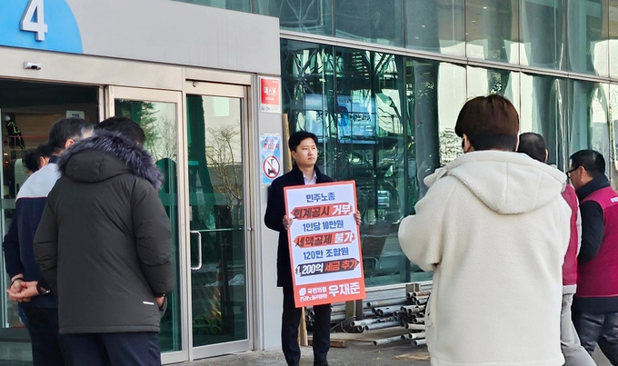 하지만 상급노조인 민주노총이 회계공시를 거부할 경우 산별노조 전체가 조합원의 의사와 관계없이 세액공제 혜택을 받을 수 없게 된다. 우 의원은 지속해서 선량한 조합원들의 권리를 위해 노동조합의 회계는 공시돼야 한다는 뜻을 밝혀왔다. 우 의원은 10일 ‘회계 공시 거부’ 안건의 철회를 촉구하는 기자회견에 이어 11일 대의원대회 회의장을 찾아 1인 시위까지 나섰다.