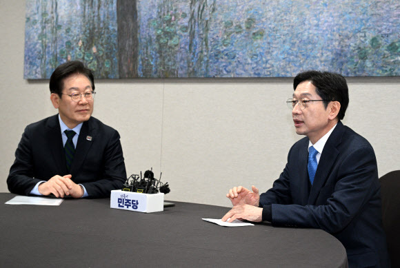 이재명 더불어민주당 대표는 13일 친문재인(친문)계 적자로 불리는 김경수 전 경남지사를 만나 “헌정수호세력, 내란 극복을 위해 동의하는 모든 세력이 힘을 합칠 필요가 있다”며 가칭 ‘헌정수호대연대’를 제안했다.