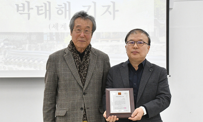 세계일보 박태해 선임기자가 한글학회 부설 한말글문화협회(대포 리대로)가 주는 ‘한글을 빛낸 큰 별’을 수상했다. 박 선임기자는 13일 서울 종로구 신문로 한글회관에서 열린 한말글문화협회 주최 ‘2025 한말글사랑 이야기 마당 행사’에서 언론인으로서 수년간 우리나라의 자랑스러운 문화유산인 한글 사랑을 실천하고 한글단체의 활동을 널리 알리는 데 기여한 공로로 이 상을 받게 됐다.