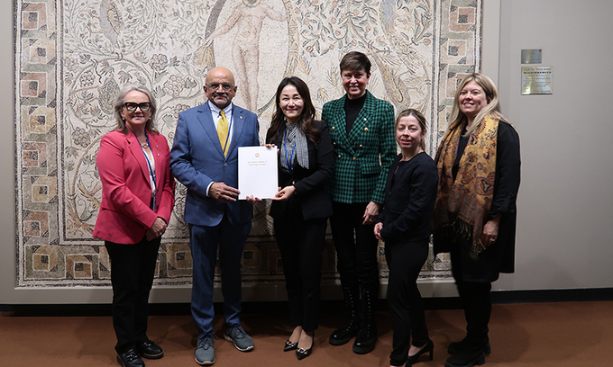 우원식 국회의장이 13일(현지시간) 유엔총회에 참석한 스웨덴, 독일, 캐나다 대표단에 대한민국 민주주의와 경제 시스템의 굳건함을 설명하는 친서를 국회 대표단을 통해 전달했다.