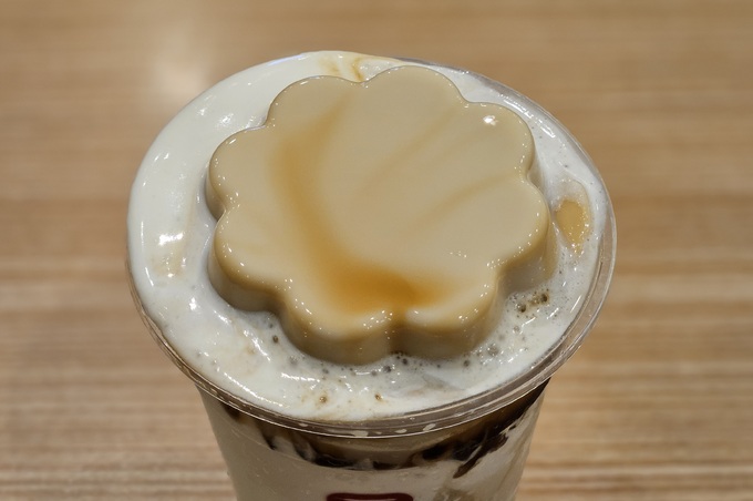 ‘흑당 두부 크러쉬+미니펄’을 받아 드니 먼저 두부인 듯 두부 아닌 두부 같은 또우화 생김새가 눈길을 잡아끌었다. 연꽃을 연상시키는 두부 푸딩을 따로 떠먹으면 말캉하고 촉촉한 식감이 느껴지고, 고소한 두유와 두부 향이 곧장 뒤따라온다. 음료와의 조합도 조화로웠다. 빨대로 들이키니 쫄깃한 미니펄과 묵직한 우롱티 스무디가 입을 가득 채웠다. 당도를 기본 50%로 했음에도 꽤 달달한 맛이 혀를 때렸다.