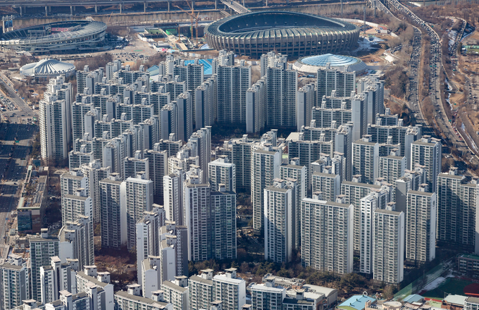 서울 송파구 롯데월드타워 전망대에서 바라본 아파트들의 모습. 연합뉴스
