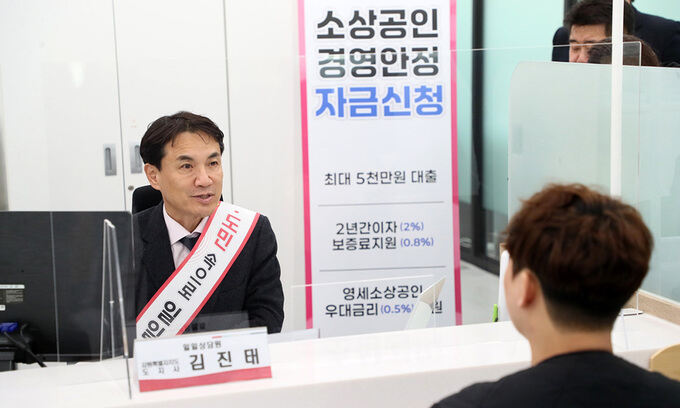 김 지사는 이날 오후 강원신용보증재단 원주지점에서 소상공인 경영안정자금 보증 상담을 위해 찾아온 소상공인들에게 보증 상담을 했다.