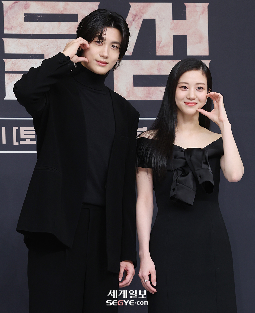 배우 박형식(사진 왼쪽)과 홍화연이 21일 오후 서울 양천구 목동 SBS에서 열린 SBS 새 금토드라마 '보물섬' 제작발표회에서 포즈를 취하고 있다.