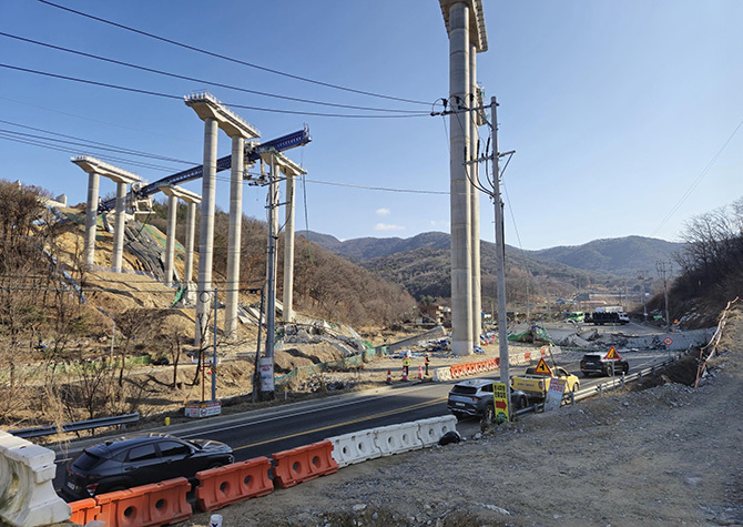 사고가 난 교량건설현장은 천안시 서북구 입장면 도림리 54-4번지 일원으로 높이 100m 가량의 높은 교각 기둥 위에 구조물 설치공사가 진행중인 곳이다.