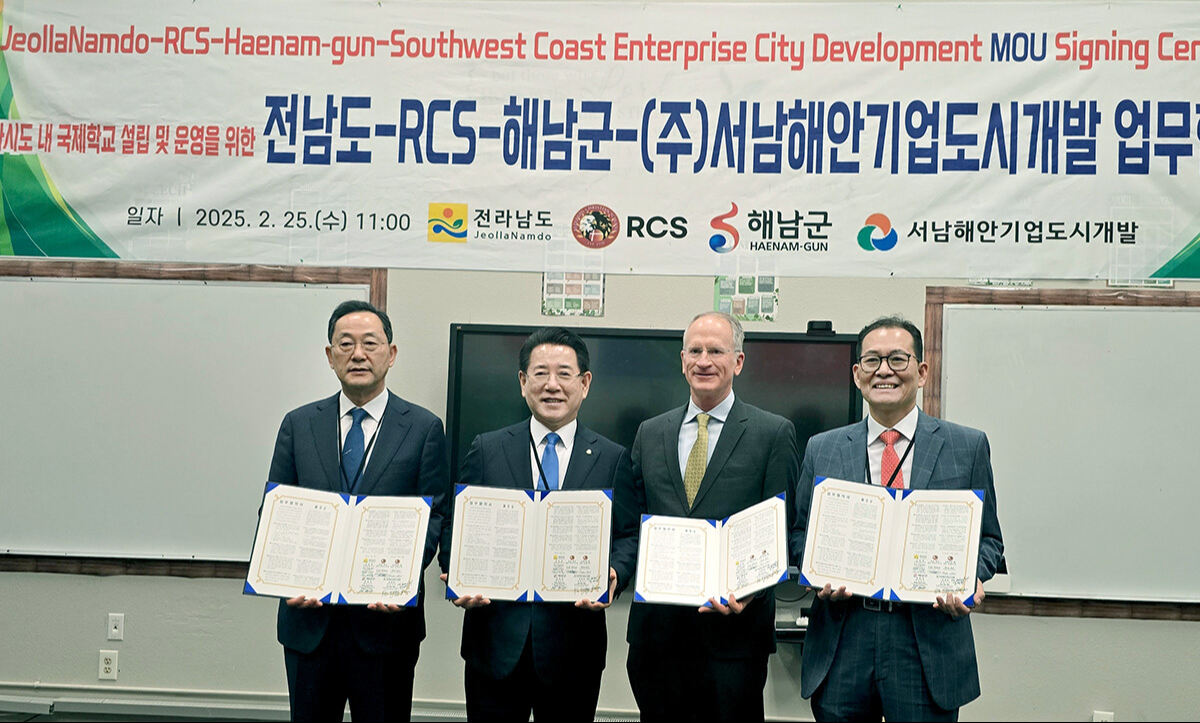 전남도는 25일(현지 시간) 미국 명문 사립학교인 레드랜즈 크리스천 스쿨(Redlands Christian School·RCS)과 해남 구성지구 솔라시도에 외국교육기관 설립을 위한 업무협약을 했다고 밝혔다.