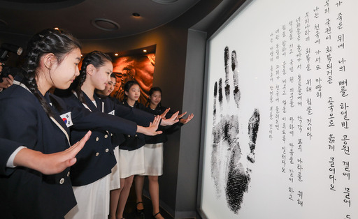 안중근 의사 뜻 이어받자 입력 : 2025-02-26 17:39:09 수정 : 2025-02-26 17:39:08 최상수 기자 구글 네이버 유튜브 26일 재개관식이 열린 서울 중구 안중근의사기념관에서 역사어린이합창단 학생들이 안중근 의사 손도장을 향해 손을 뻗어보고 있다. 국가보훈부는 광복 80주년을 맞아 안중근 의사의 하얼빈 의거, 법정투쟁 과정 등을 담은 디지털 전시물을 대폭 확대했다고 밝혔다. 기념관은 삼일절인 내달 1일부터 관람할 수 있다. 기자 Copyright ⓒ 세계일보. 무단 전재 및 재배포 금지 세계일보