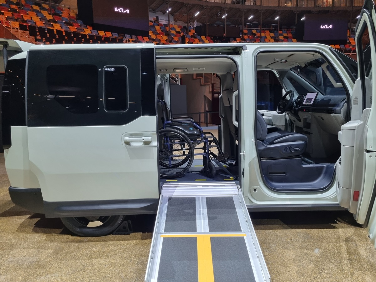 휠체어 탑승자를 위해 탄생한 WAV도 눈길을 끌었다. 인도에서 안전하게 타고 내릴 수 있도록 차량 후면이 아닌 측면 승하차 방식으로 디자인했한 것이 가장 큰 특징이다. 2열에서 탑승해 휠체어 벨트 체결을 쉽게 할 수 있도록 만들었고 보호자가 동승해 휠체어 탑승자를 옆에서 보조할 수 있도록 3열 팁업 시트를 적용했다. 기아는 WAV가 고가의 휠체어 탑승 차량의 장벽을 낮출 것으로 기대하고 있다.