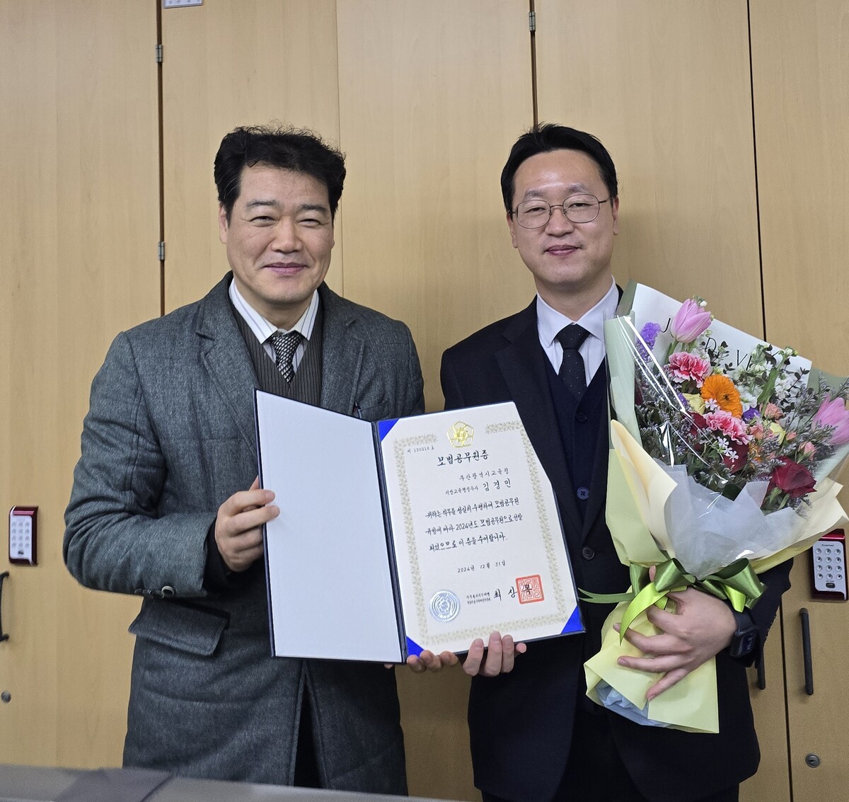 27일 부산교육청에 따르면 지난해 12월 ‘2024년 하반기 모범공무원’으로 선정돼 국무총리 포상을 받은 부산교육청 김경민(45) 주무관이 포상금 전액을 기부했다.