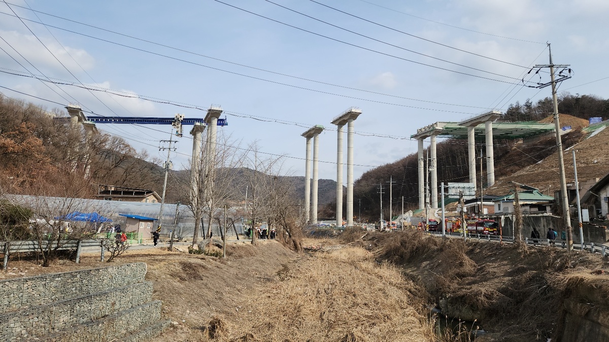 사고 현장은 도로공사가 발주한 서울세종고속도로 천안∼안성 구간 9공구 청룡천교 건설현장이다. 이 구간 시공은 현대엔지니어링이 주관하고 있다. 하도급사인 장헌산업은 교량 상판 구조물인 거더(다리 상판 밑에 까는 보의 일종)를 설치하는 작업을, 강산개발은 거더 위에 슬라브(상판)를 얹는 작업을 각각 맡았다.