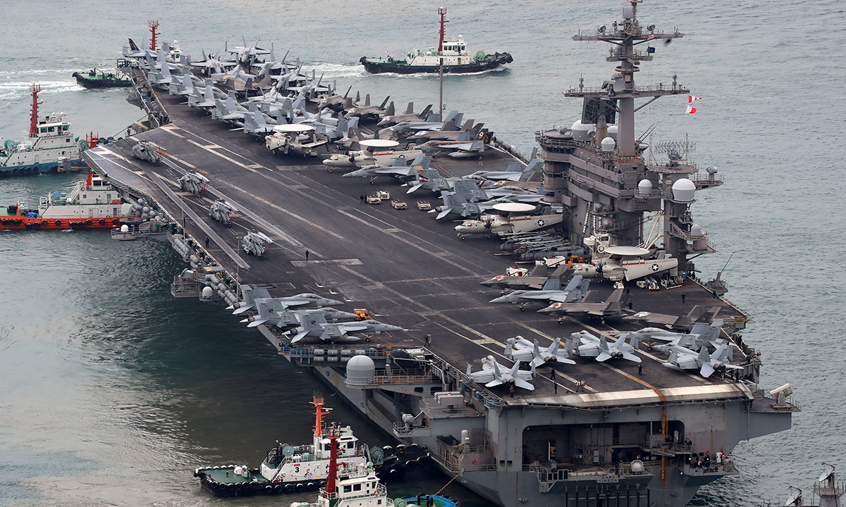 도널드 트럼프 2기 미국 행정부 출범 후 처음으로 미국 해군 핵항공모함이 한국에 왔다.
