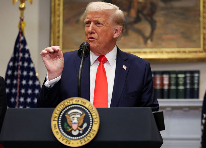 트럼프 대통령은 이날 백악관 루스벨트룸에서 TSMC의 투자계획을 발표하며 "내일 캐나다에 25%, 멕시코에 25% 관세가 시작될 것이다"고 말했다.