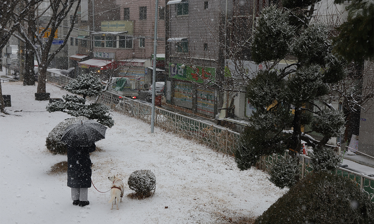 서울(종로구 서울기상관측소 기준)은 이날 내려 쌓인 눈의 양이 3.1㎝다. 충북 제천 일신적설은 4.1㎝, 강원 영월은 3.8㎝, 경기 파주·의정부는 각각 3.7㎝다.