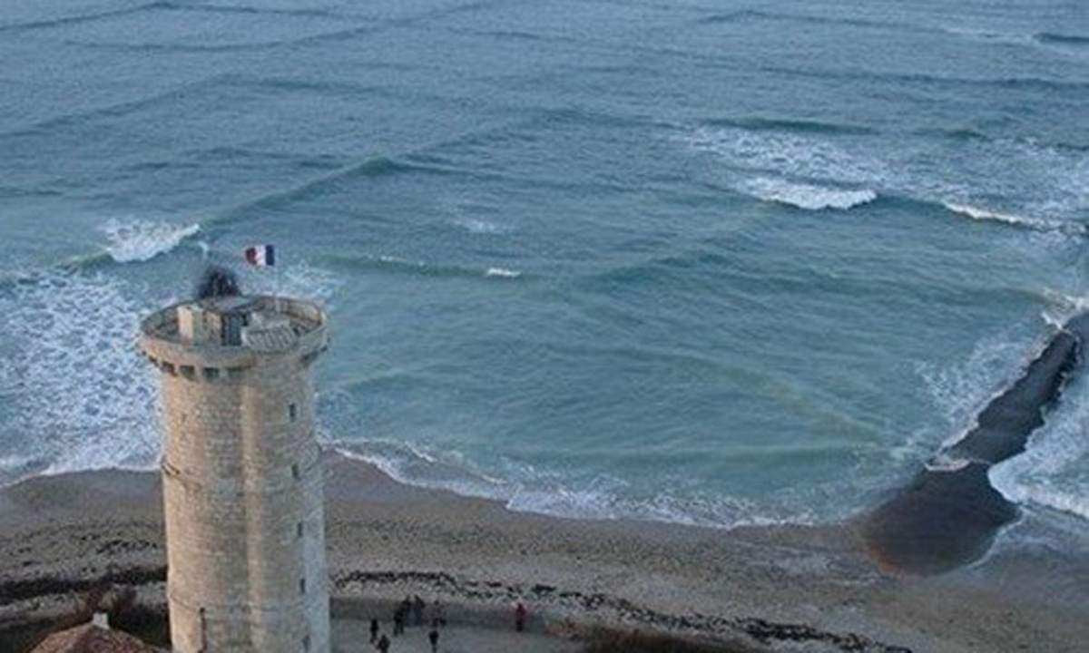 사각형 파도라고 불리는 이 현상은 사방에서 밀려온 파도가 몰아치면서 서로 반대되는 방향으로 가려다 부딪힐 때 생긴다. 충돌 시점의 파도 꼭대기 부분이 평소보다 두 배나 높아지면서 멀리서 보면 사각형 격자무늬를 이루게 된다.