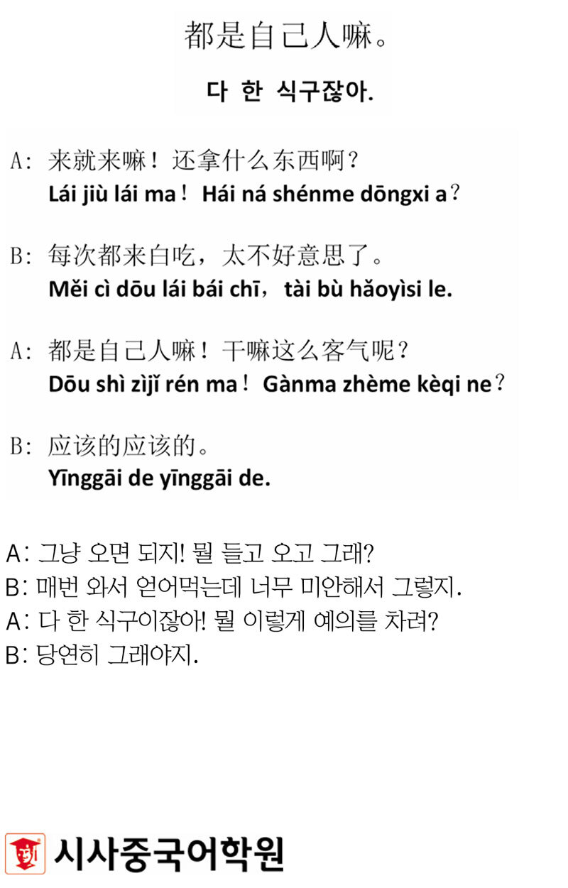 [시사중국어학원의 리얼 중국어 회화] 다 한 식구잖아.
