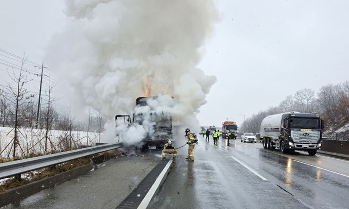 4일 경북소방본부에 따르면 이날 오전 10시47분 경북 김천시 남면 초곡리 경부고속도로 부산방면 191㎞ 지점을 달리던 6.5t 화물차에 불이 나 1시간54분여 만에 꺼졌다.