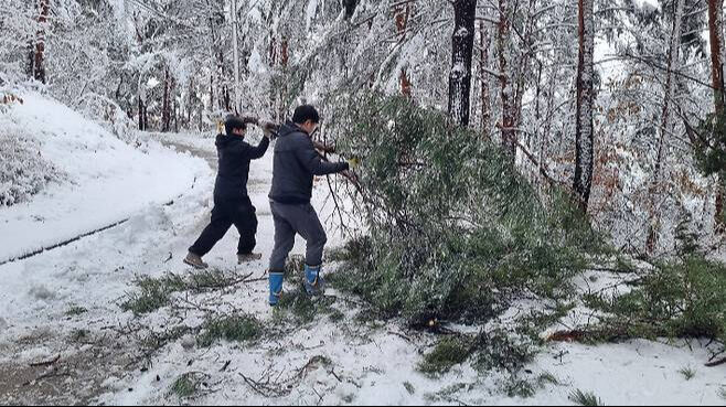 이날 오전 10시 기준 금강송면에 최대 30㎝의 눈이 왔고, 매화면에는 12㎝, 울진읍은 10㎝의 눈이 쌓였다.