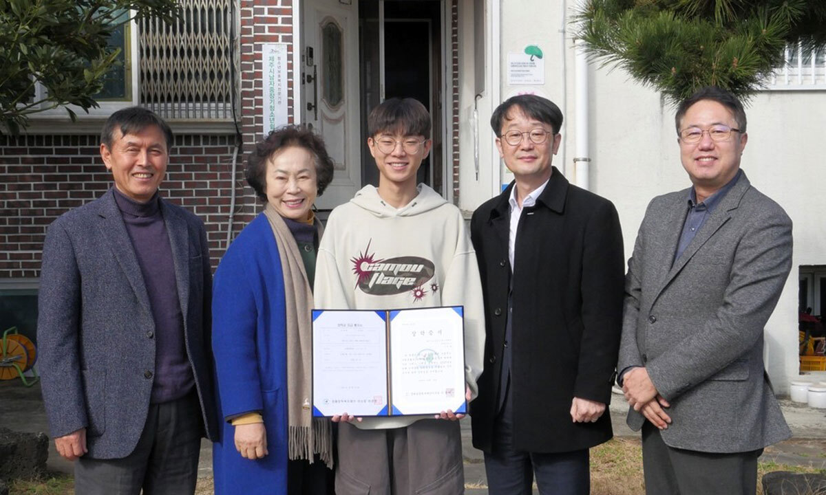 지난달 25일 경해장학복지재단은 신군에게 진학의 꿈을 위한 장학금 300만원을, 재단법인 산호장학회와 농협은행 제주본부는 500만원을 각각 지원했다.