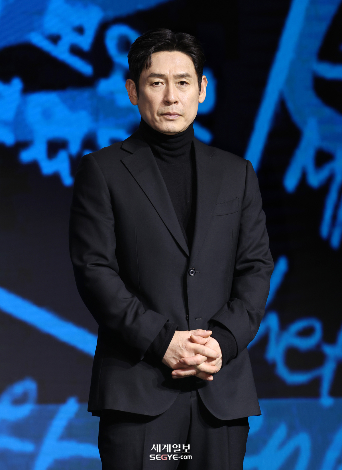 배우 설경구가 17일 오전 서울 영등포구 콘래드호텔에서 열린 디즈니플러스 '하이퍼나이프' 제작발표회에 참석해 포즈를 취하고 있다.