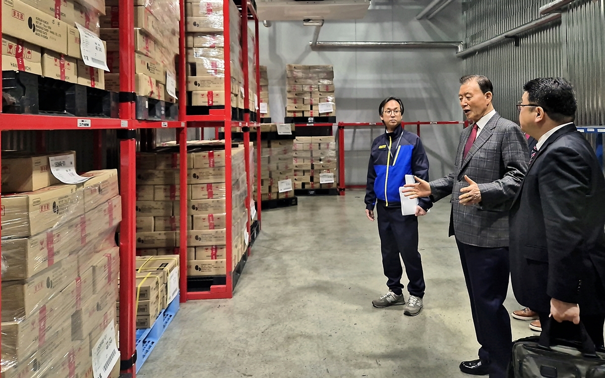 한국농수산식품유통공사(aT) 홍문표 사장은 3월 13일 일본 가나가와현 가와사키시에 소재한 해외공동물류센터 ‘란테크 가와사키센터’를 찾아 김치, 삼계탕, 전복 등 일본에 수입된 한국 냉장냉동식품의 보관 현황을 세심히 점검했다.