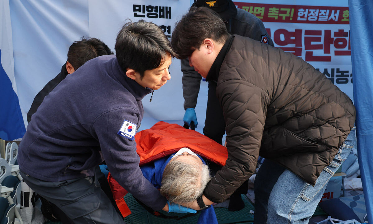 민 의원과 함께 단식 중인 민주당 박수현 의원은 이날 페이스북을 통해 "단식 8일째 쇠약 상태에서 민 의원이 이송됐다"며 "눈이 쏟아지던 간밤에 발전기 고장으로 인한 극심한 추위도 상태를 악화시킨 것 같다"고 전했다.