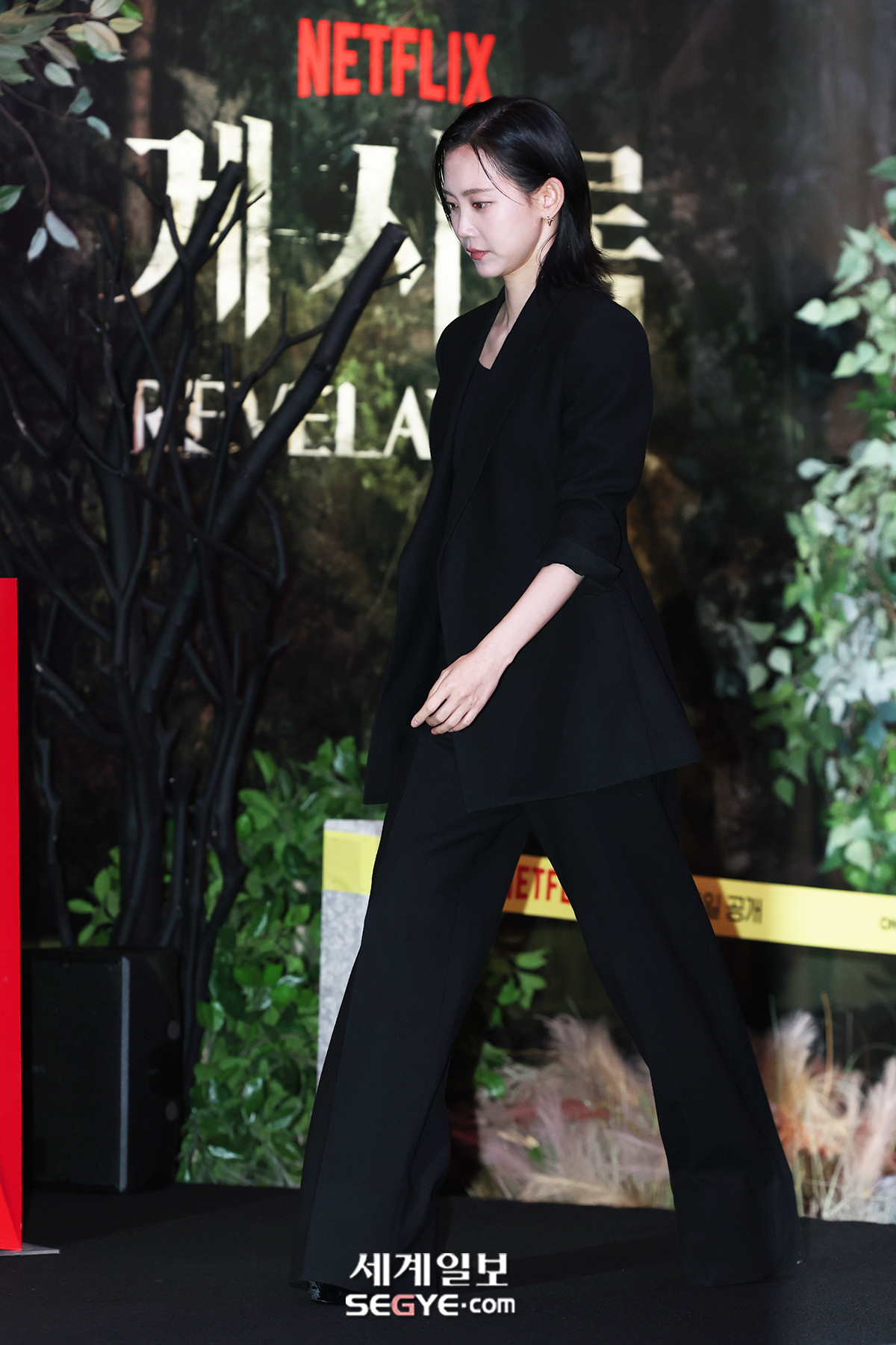 배우 신현빈이 18일 오전 서울 호텔 나루 서울 엠갤러리에서 열린 넷플릭스(Netflix) 영화 ‘계시록’의 제작보고회에 참석하고 있다.