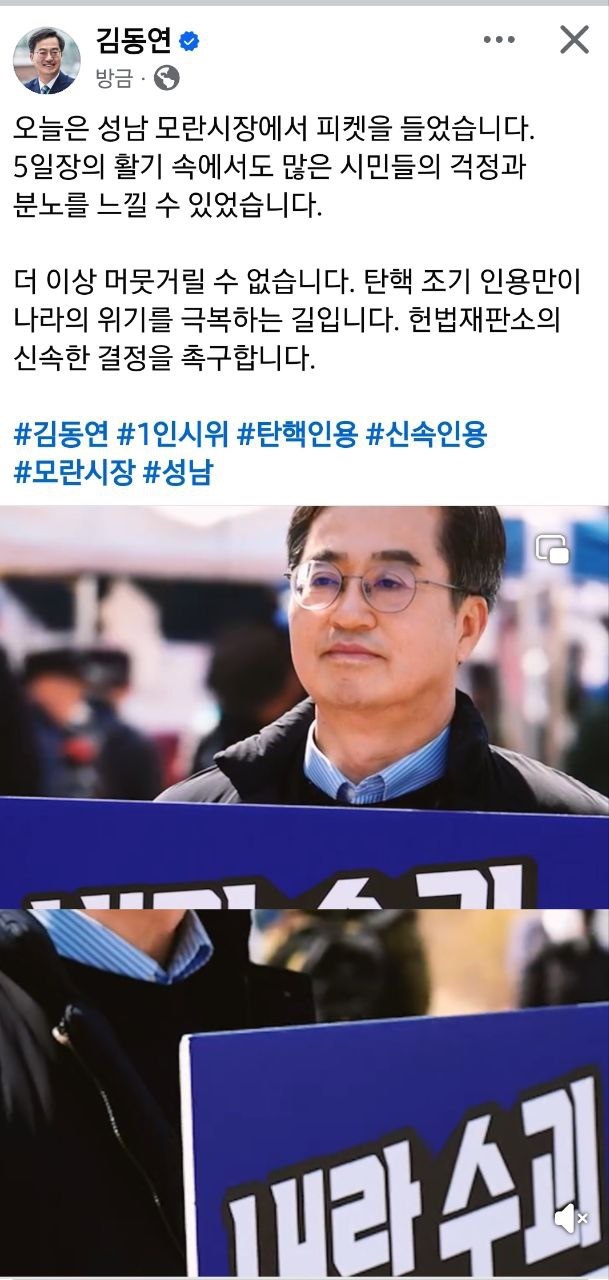 그러면서 “지금 계엄과 내란 종식을 위한 조속한 탄핵 인용이 시급하다. 경제도 어렵고 정치적 불확실성으로 나라가 결딴나고 있는 상황”이라고 설명했다.