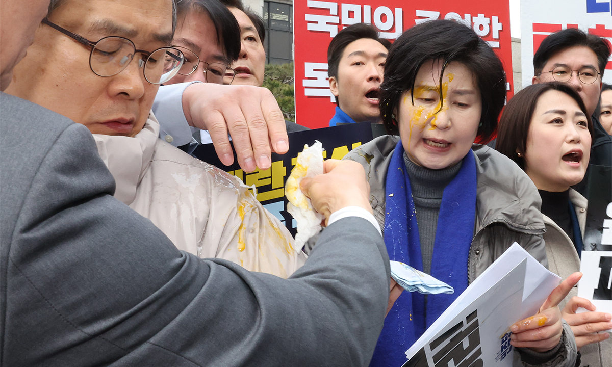 보수·진보 진영의 탄핵 시위 양태가 위험수위를 넘고 있다. 더불어민주당 원내부대표단 의원들이 어제 헌법재판소 앞에서 윤석열 대통령의 신속한 파면을 촉구하는 기자회견을 하던 중 건너편 인도에서 보수 지지자들이 던진 계란에 맞는 봉변을 당했다. 얼굴에 날계란을 맞은 백혜련 의원은 “솔직히 너무 아프다. 민주주의 사회에서 있어서는 안 되는 일”이라며 투척범을 고소했다. “민주당의 헌재 압박이 도를 넘었다”며 격앙된 보수 진영 시위자들이 계란이 아닌 돌멩이 등 위험한 물체를 던졌다면 심각한 사태가 벌어졌을 것이다. 재발을 막기 위해서라도 경찰은 신속히 범인을 검거해 엄벌해야 한다.