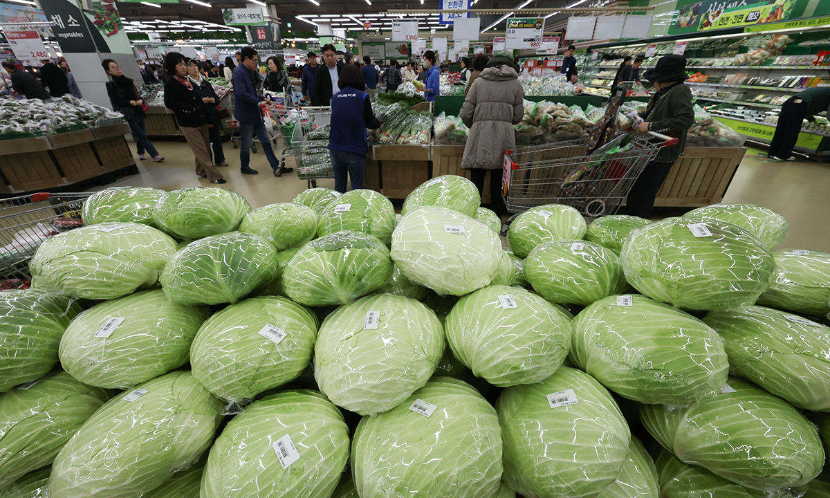 양배추 가격이 급등한 건 작황 부진으로 생산량이 줄었기 때문이다. 한국농촌경제연구원 농업관측센터에 따르면 겨울 양배추 생산량은 12만2000t으로 1년 전보다 6% 줄었고 평년 대비 17% 감소했다.