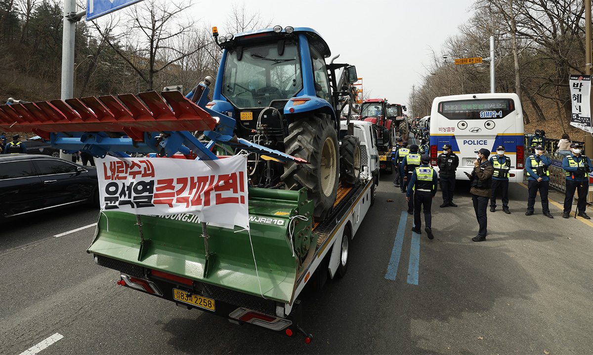 윤석열 대통령의 탄핵을 촉구하는 농민 단체가 25일 트랙터를 끌고 상경 시위를 벌이면서 서울 진입로인 서초구 남태령 일대에 극심한 혼잡이 빚어졌다. 전날 법원은 트랙터를 제외한 트럭 시위를 허용했는데, 이들이 트럭 위에 트랙터를 싣고 상경하면서 경찰과 대치를 벌였다. 남태령 일대에 탄핵을 반대하는 보수 성향의 유튜버가 모여들면서 양측의 긴장감이 고조됐다.