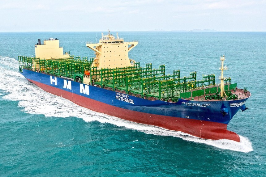 HMM그린은 9000TEU(1TEU는 20피트 컨테이너 1개)급 컨테이너선으로 바이오 메탄올을 연료로 사용해 탄소 배출량이 화석연료 선박보다 65 이상 적다.
