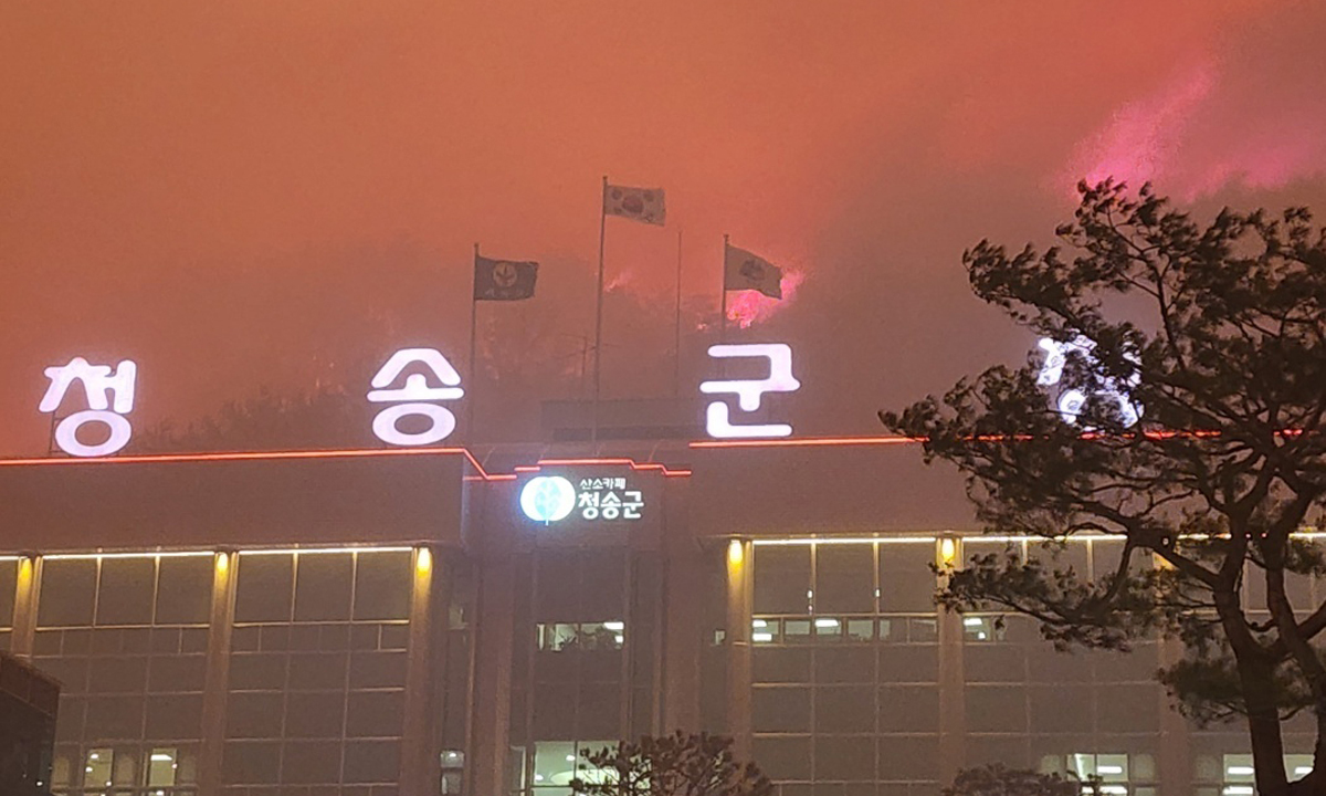 주왕산국립공원 관계자는 "바람이 너무 세지면서 산불이 지금 청송을 다 덮쳤다"며 "국립공원에도 불씨가 날라와 불이 났다"라고 말했다.