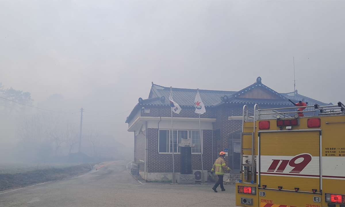 건조한 날씨와 강풍으로 전국 곳곳에서 산불이 잇달아 발생하고 있는 가운데 전북 고창에서도 산불이 나 주택과 창고 등 15동을 태우고 3시간여 만에 진화됐다.