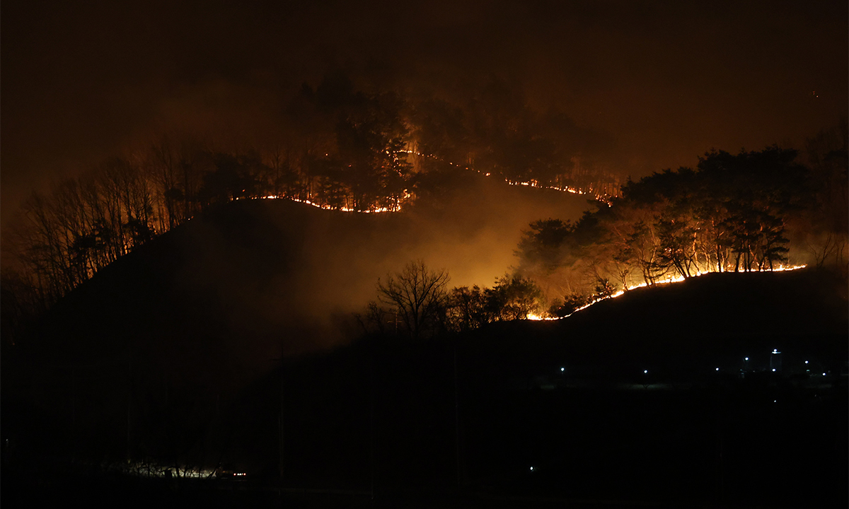 경북 영덕군은 의성에서 시작한 산불의 급속 확산에 따라 주민 9763명에게 긴급 대피명령을 내렸다고 25일 밝혔다.