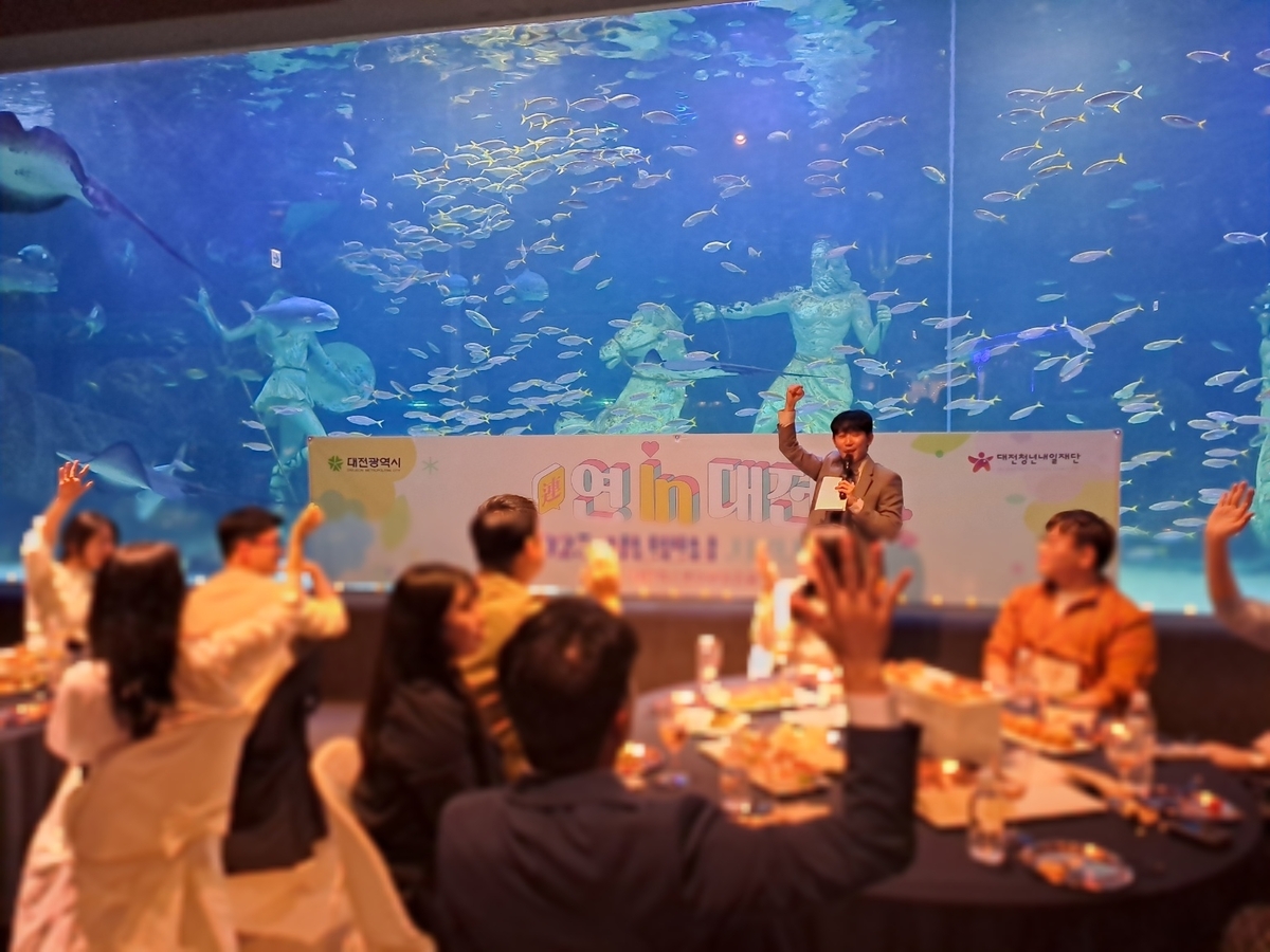 27일 대전시에 따르면 시는 전날 유성구 대전신세계아쿠아리움에서 미혼 청춘남녀 단체소개팅 행사인 ‘연(連)인(In) 대전’을 진행했다.
