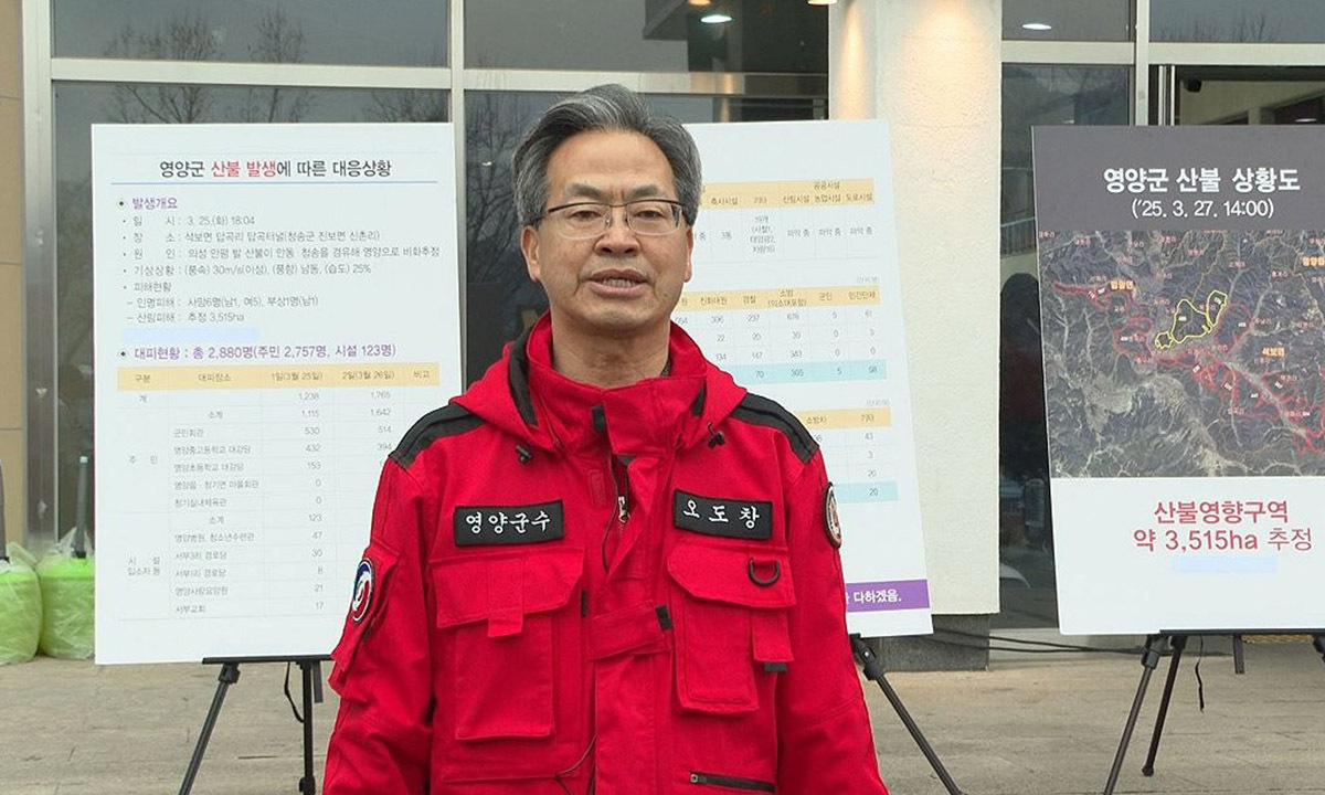 오 군수는 이날 오전 영양군 이재민 대피소인 영양군민회관에서 기자회견을 하고 "오늘을 산불 완진의날로 정하겠다"며 이같이 밝혔다.