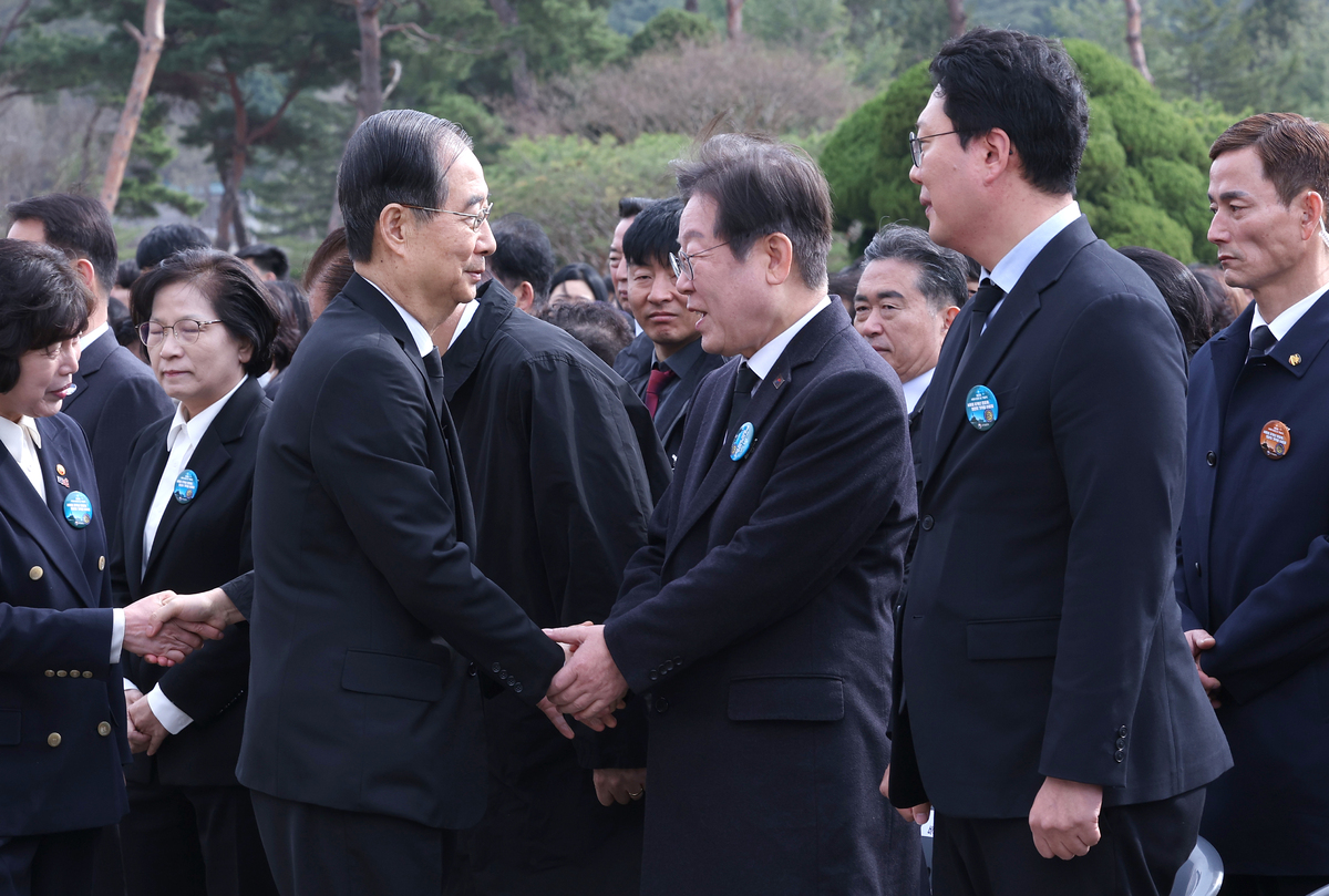 [포토] 악수하는 한덕수·이재명 입력 : 2025-03-28 17:04:34 수정 : 2025-03-28 17:04:34 대전=남정탁 기자 jungtak2@segye.com 구글 네이버 유튜브 한덕수 대통령 권한대행 국무총리가 28일 국립대전현충원에서 열린 제10회 서해수호의 날 기념식에 참석하며 더불어민주당 이재명 대표와 인사를 하고 있다. 남정탁 기자 Copyright ⓒ 세계일보. 무단 전재 및 재배포 금지 세계일보 남정탁 이슈 나우 더보기 “남친과 야간근무 같이 했다”…영상 찍어 자랑한 간호사의 최후