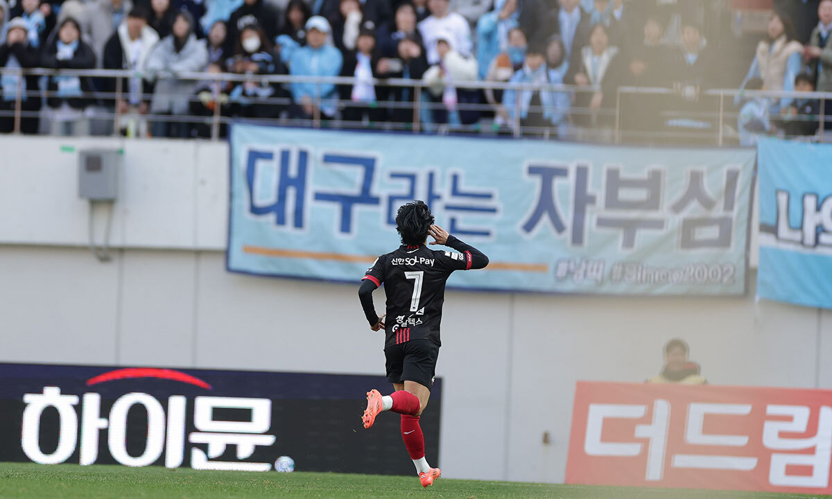 2016시즌 K리그1 대구FC에서 데뷔한 정승원(28)은 입단과 함께 큰 인기를 얻었다. 정승원은 뛰어난 실력에 수려한 외모를 뽐냈고 대구시는 그를 2019년 시 홍보모델에 발탁하며 애정을 표현했다. 하지만 정승원은 2021시즌을 앞두고 연봉 문제로 팀과 갈등을 빚었다. 결국 정승원은 2022시즌을 앞두고 팀을 떠났고, 올 시즌에 FC서울에 합류했다. 정승원이 대구를 떠난 지 시간이 꽤 흘렀지만 친정팀에 대한 감정은 남은 모양이다. 대구를 상대로 개인통산 첫 골을 뽑아낸 정승원은 상대 진영에서 도발 세리머니로 논란을 일으켰다.