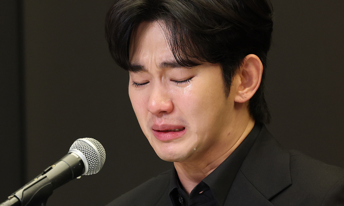 배우 김수현이 자신의 사생활 논란과 관련한 기자회견에서 눈물을 흘렸다.
