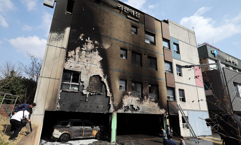 이 불로 인해 4층 건물 외벽과 내부가 불에 탔고, 1층 주차장에 주차된 차량 9대가 전소됐다.