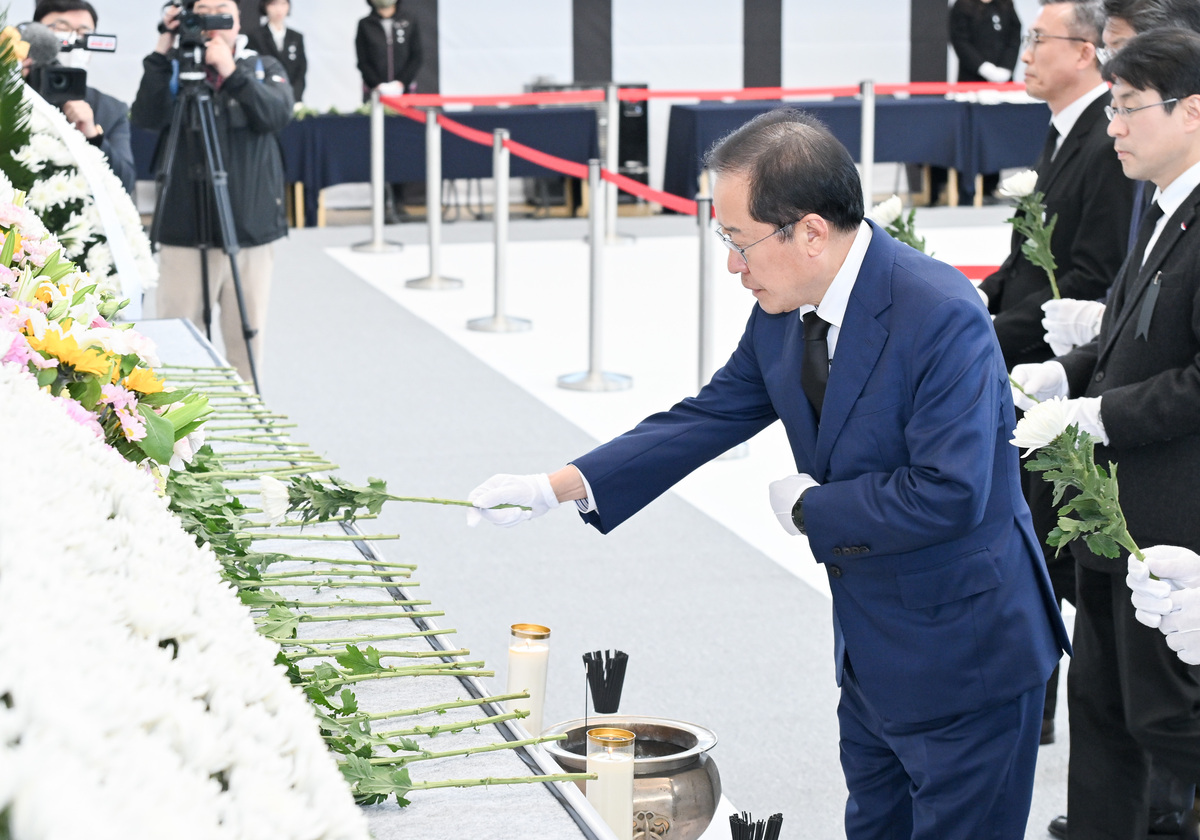 홍준표 대구시장은 31일 대구 달서구 안병근올림픽기념유도관에 설치된 영남권 산불피해 희생자 합동분향소를 찾아 시 간부 공무원 30여 명과 함께 희생자들의 넋을 기리며 헌화하고 참배했다.