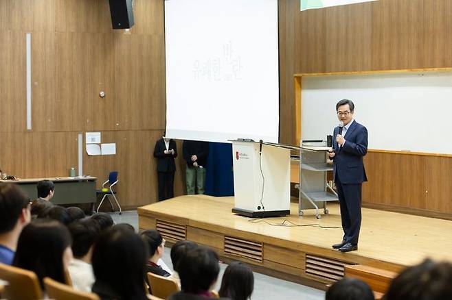 산불 현장을 다녀온 김동연 경기도지사가 1일 서울 마포구 서강대학교를 찾아 강연으로 일정을 이어갔다.
