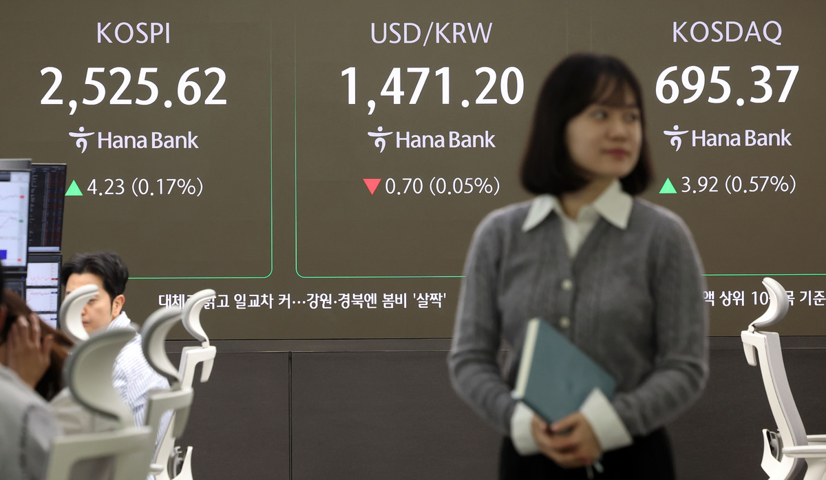 지수는 전장보다 4.23포인트(0.17%) 오른 2,525.62로 출발해 강보합세로 보이다 하락 전환해 전날 탈환한 2,500선을 다시 내줬다.