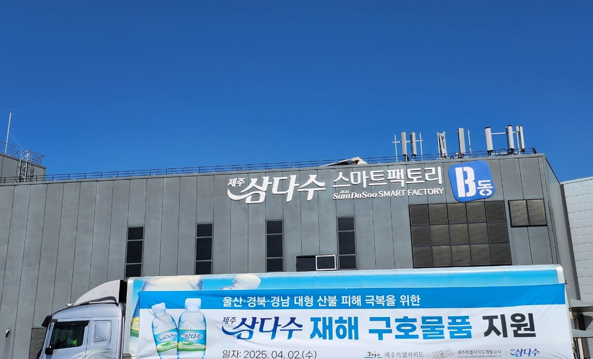 제주도개발공사는 지난달 말 대형 산불 피해지역인 울산과 경북, 경남 피해지역에 구호용 제주삼다수 3만3600병(0.5ℓ 들이)을 긴급 지원한데 이어 2일 22만4000병을 추가로 지원한다.