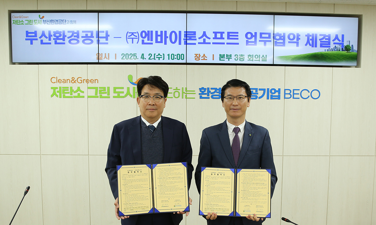 부산환경공단은 2일 ㈜엔바이론소프트와 대체 탄소원 무상 공급 내용을 담은 ‘외부 탄소원 사용’ 업무협약(MOU)을 체결했다고 밝혔다.