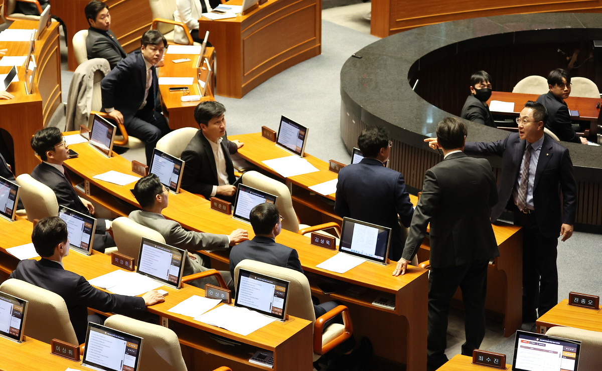 2일 국회 본회의는 ‘코로나19 피해보상 완화법’ 등 비쟁점 법안을 처리하다 막판 국민의힘 박충권 의원의 발언 및 이에 대한 더불어민주당 의원들의 강력한 항의로 20여분간 중단되는 파행을 겪었다. 야권이 주도한 마은혁 헌법재판관 후보자 임명 촉구 결의안에 민주당 강유정 의원이 찬성토론을 하던 중 박 의원의 “공산주의자” 발언으로 파행이 일어났다.