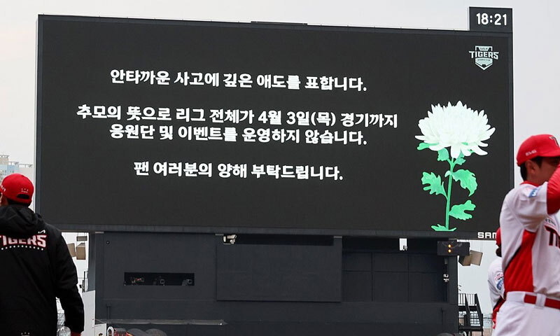 사망자를 애도하고자, 한국야구는 잠시 멈췄다.